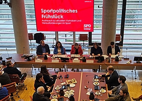 Dass sie das Sportfrühstück am 26.03. - ausgerechnet einen Tag nach der Verabschiedung des Sportfördergesetzes - durchführen würden, sei ein schöner Zufall gewesen, so Bettina Lugk, Sprecherin für Sport der SPD. Nun fanden sich zahlreiche Stakeholder des Spitzensportes, sowie Manuel Pauser von adidas AG und Hendrikje Lučić vom BSI als Gäste aus der Wirtschaft zusammen, um die aktuelle Sportpolitik zu besprechen.